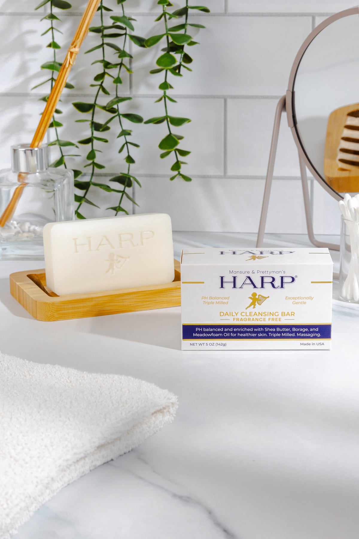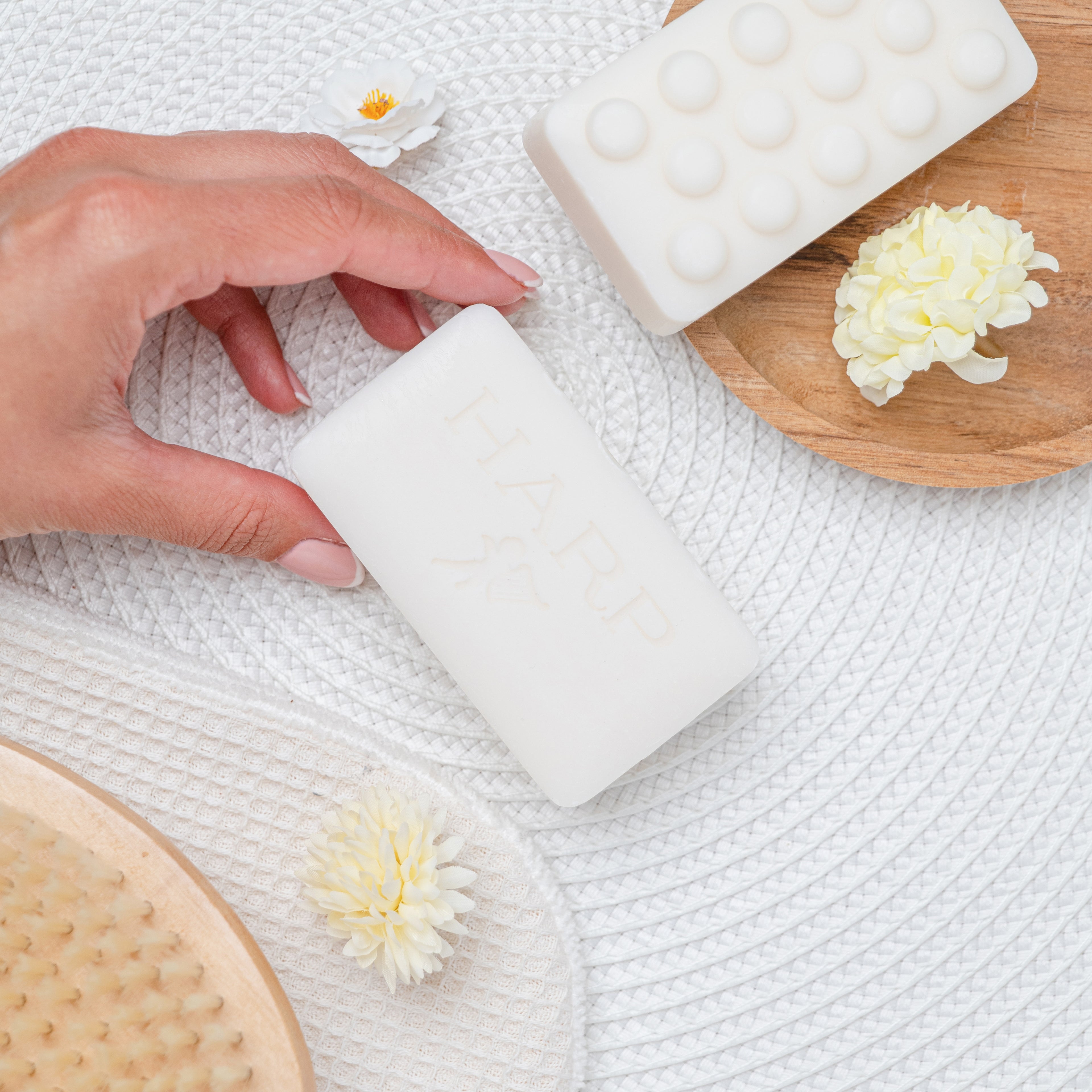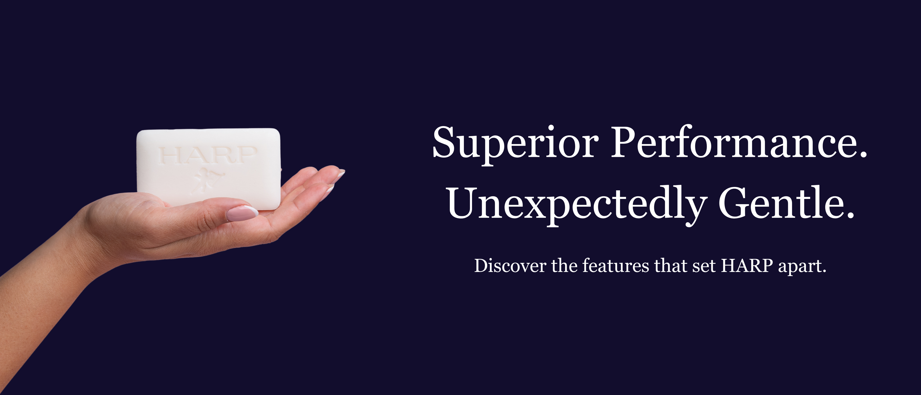 HARP cleansing bars are never made with saponified animal fats or vegetable oils like typical soaps. Those low-cost bases create high-pH formulas that strip moisture and leave skin dry.