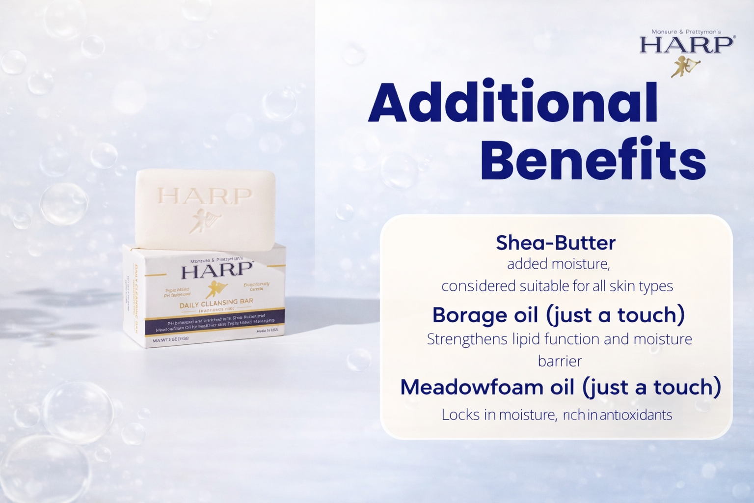 This pH-balanced body wash bar (5.0–6.0) is designed to cleanse without disrupting your skin’s natural moisture barrier. Unlike traditional soaps that can dry or irritate the skin, this soap-free, lye-free formula delivers a gentle cleanse that leaves skin feeling soft, comfortable, and balanced.